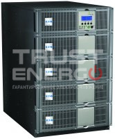 Управление прибором и контроль состояния сети осуществляются с лицевой панели, в которую встроен компактный дисплей. Устройство автоматически включает режим резервного питания при перегрузках с задержкой по времени в зависимости от интенсивности и длительности нагрузки. Время работы в автономном режиме - от 8 минут. Модульный корпус обеспечивает хорошую вентиляцию и доступ к встроенным АКБ.